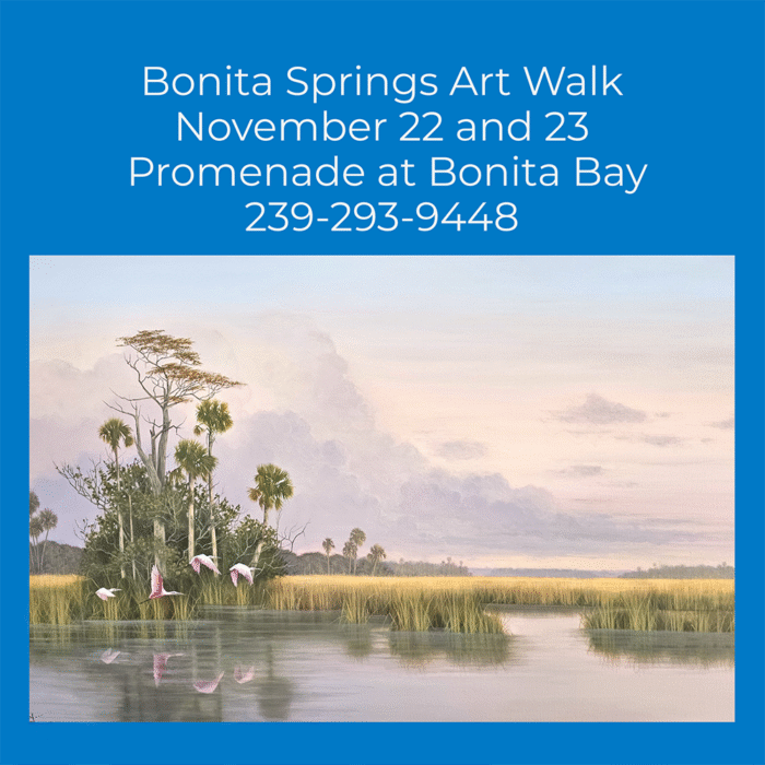 Saturday, November 22 from noon to 7 p.m. and Sunday, November 23 from 10 a.m. to 5 p.m. Immerse yourself in the area’s finest art in a unique outdoor Art Walk! Visitors to the event will stroll the pathways and sidewalks of the Promenade at Bonita Bay. Artists and their work will line the walkways displaying a variety of artworks in a wide-open creative layout designed for your comfort and safety. All displays will be in the shade for your comfort.